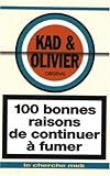 Kad et Olivier nous proposent, avec leur humour légendaire, 100 bonnes raisons de continuer à fumer ou reprendre la cigarette. Difficile de ne pas tre convaincu : "Si vous reprenez, vous aurez droit à la pause cigarette dans votre entreprise", "Sortir de la fumée par la bouche et en mme temps par le nez c'est quand mme une super technique de drague, quand on n'a pas le physique !". J'ai beaucoup aimé ce livre, qui m'a fait bien rire. Une petite baisse de régime ? Lisez, ne serait-ce qu'une phrase, et hop, c'est reparti ! A consommer sans modération. Vous ne risquerez qu'une chose : tre mort... de rire !